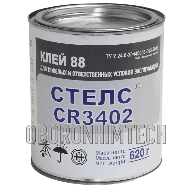 Клей Стелс CR 3402 — універсальний контактний клей на основі поліхлоропрену, призначений для склеювання гуми, металу, скла, шкіри, деревини та більшості пластиків. Забезпечує міцне та довговічне з’єднання з показником 47–60 Н/см через 24 години.